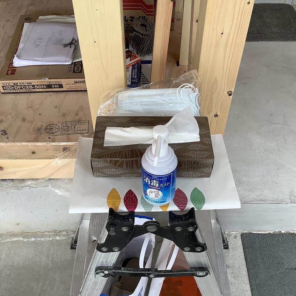 消毒液、マスクを用意し
