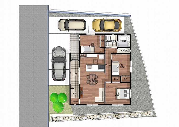 (お車3台分の駐車スペース確保♪)